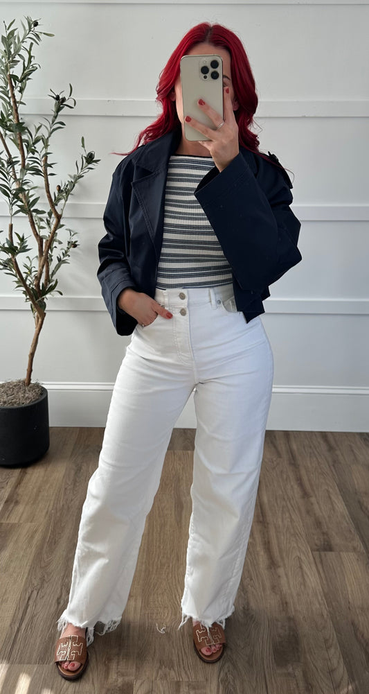 Amy Navy Cropped Trench Coat