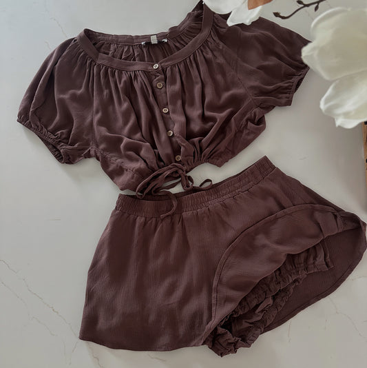 Corduroy Square Neck Puff Sleeve Mini Dress
