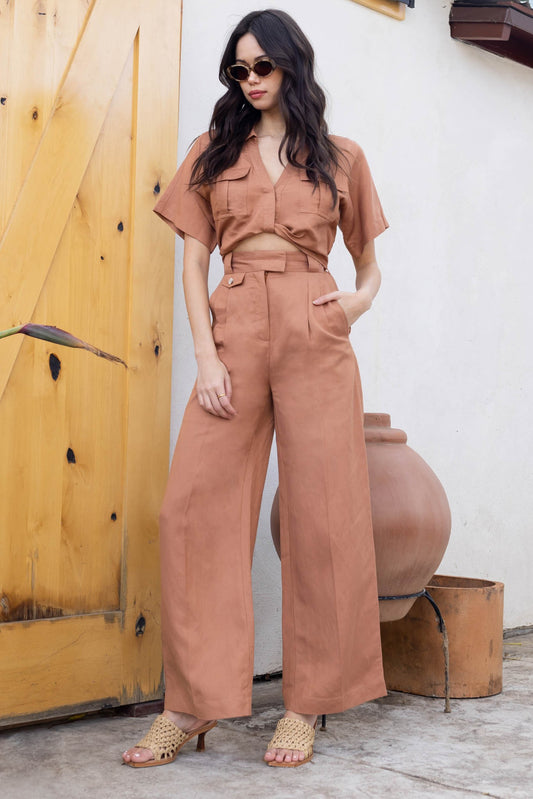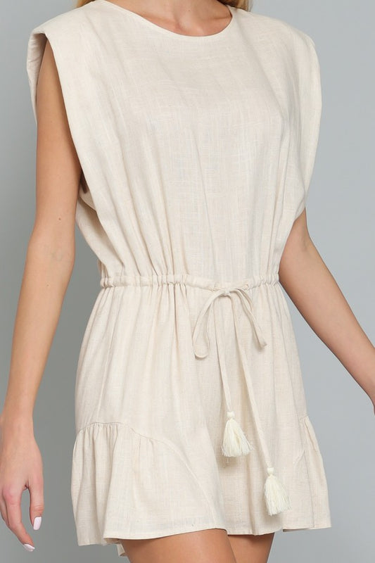 Collared Wide Sleeve Lace Up Waist Loose Romper