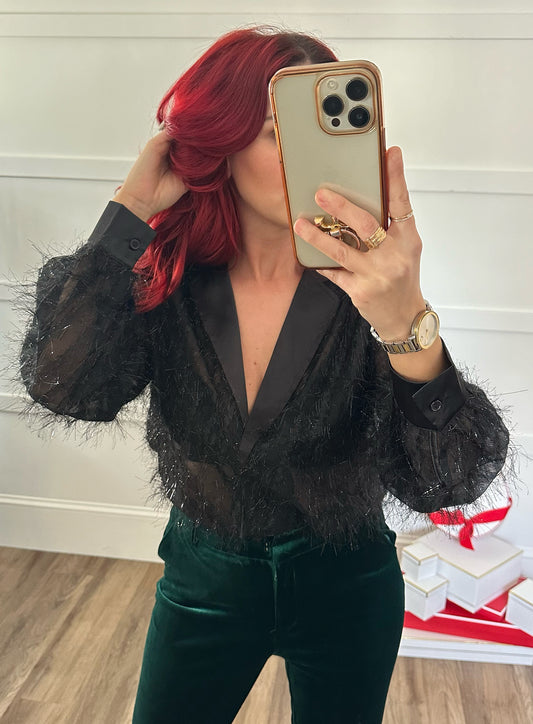 Fuzzy Fringe Button Down Blouse