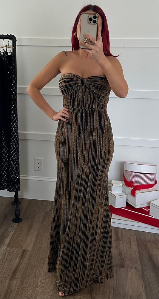 Sold outGold and Black Bandeau Maxi Dress