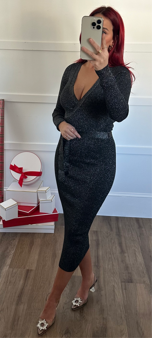 Carli Silver Sparkle Midi Dress