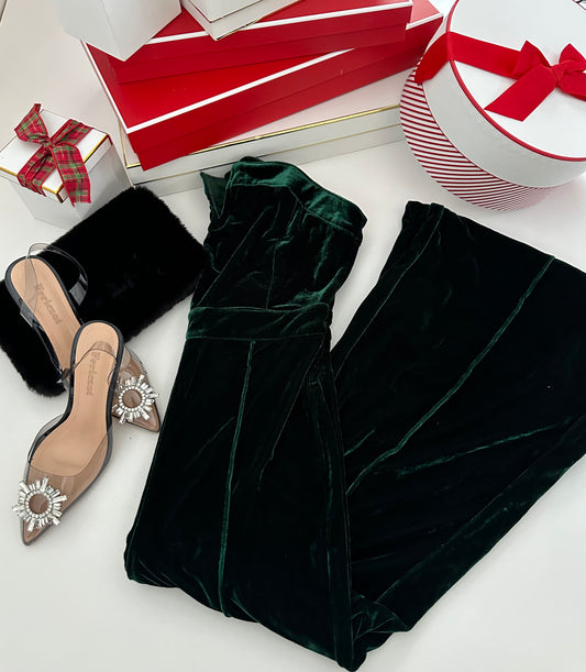 Sold outSusan Velvet Emerald Green Jumpsuit