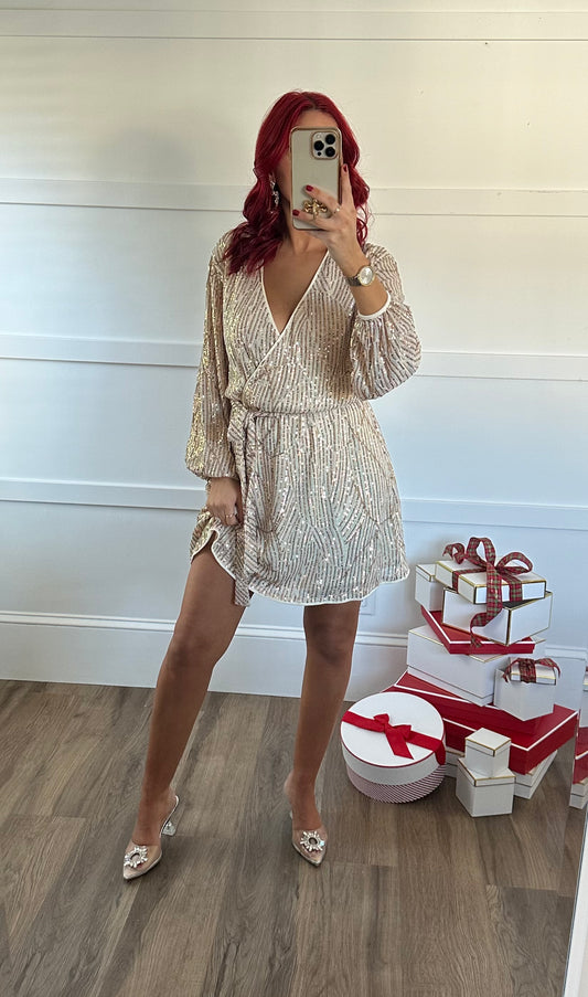 Anna Sequin Long Sleeve Surplus Dress