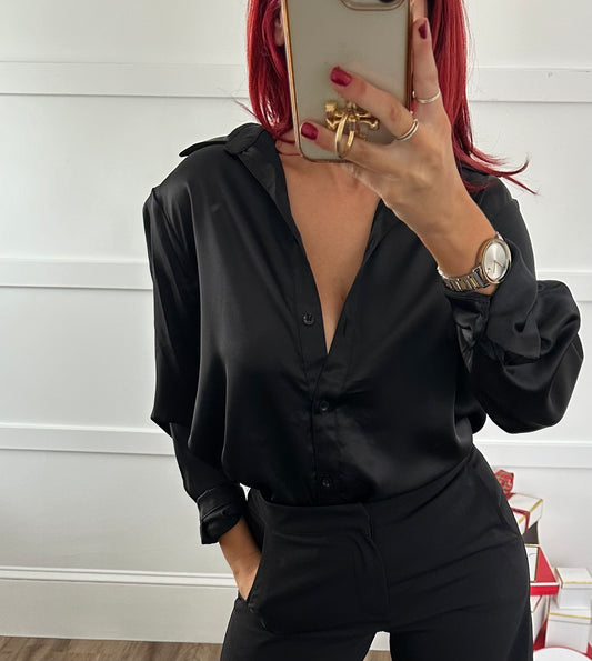 Sold outIsadora Black Satin Button Down