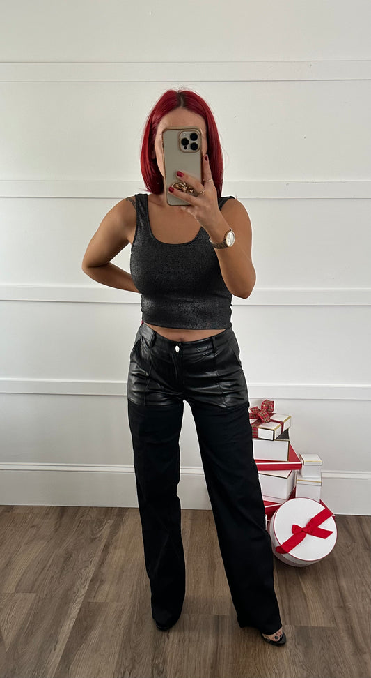 Emma Faux Leather Shorts Detail Straight Leg Pants