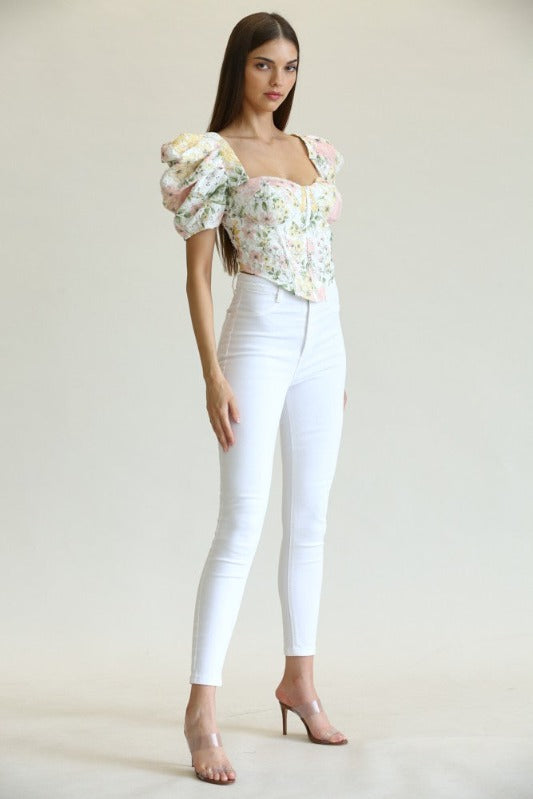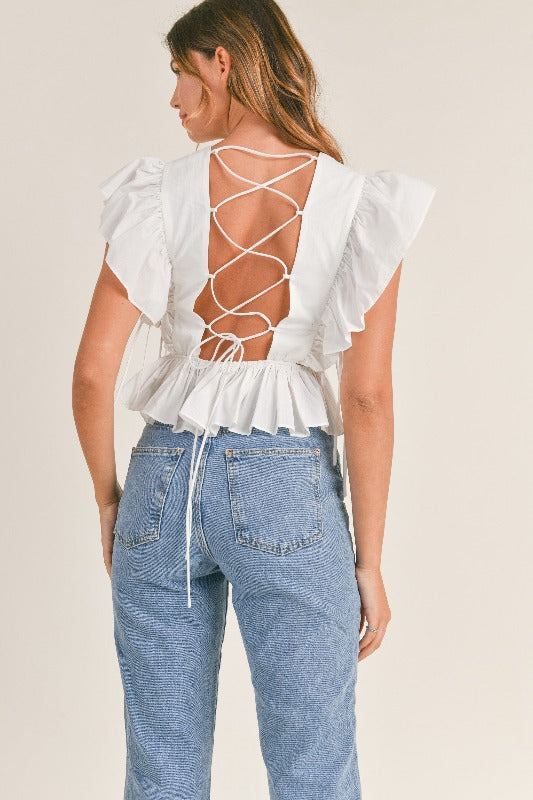 COTTON POPLIN LACE UP DETAIL RUFFLE PEPLUM TOP
